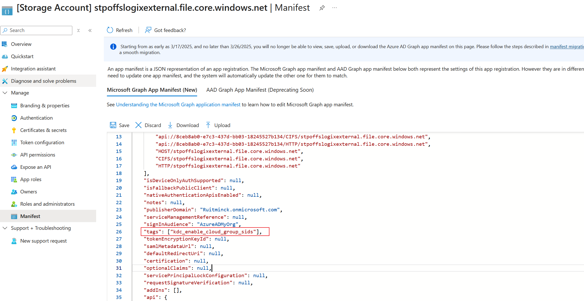 - Adding the kdc_enable_cloud_group_sids value to the manifest file