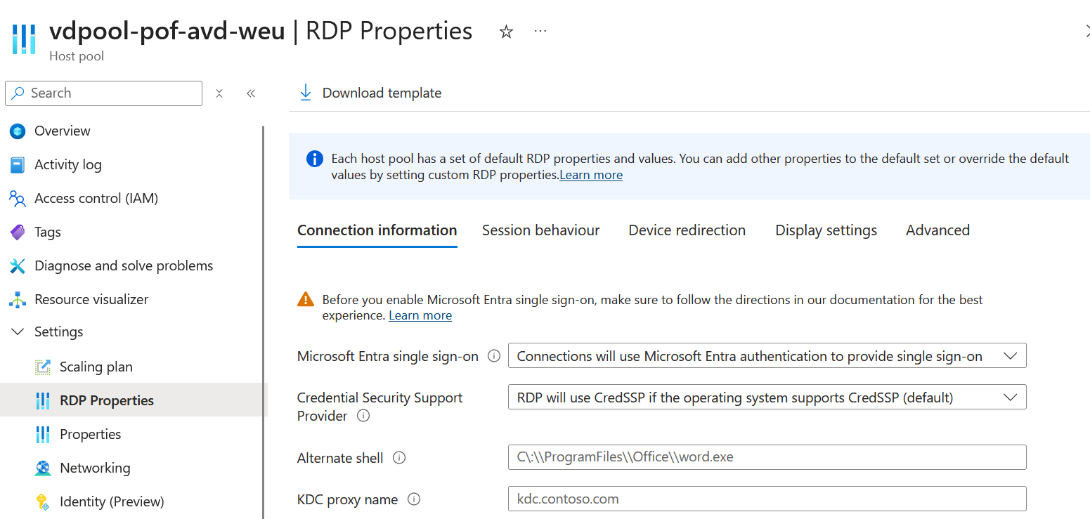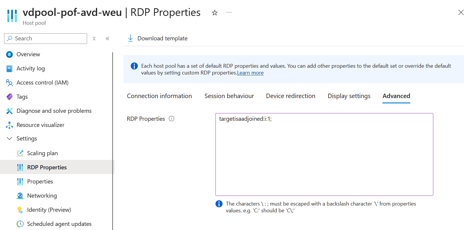- In a hostpool, only one configuration setting can be used, so an entra joined host cannot be in the same pool as a domain joined session host, otherwise it will not work.